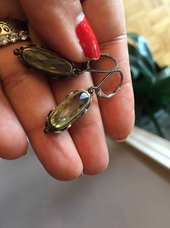 Vintage Sterling Silver drop Earrings with Green Stones - jewelry -...