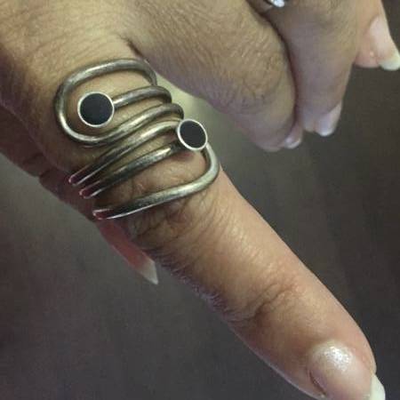 Vintage Sterling Silver Ring (Size 6-7) with Natural Onyx Stones Excellent Condition and Clear Silver Stamp if interested please call or send an email