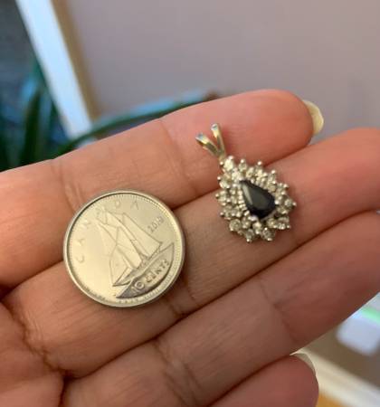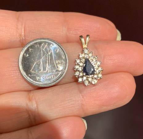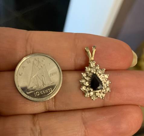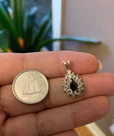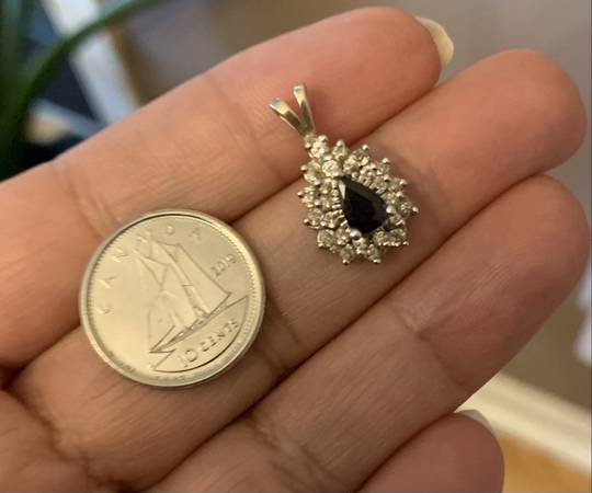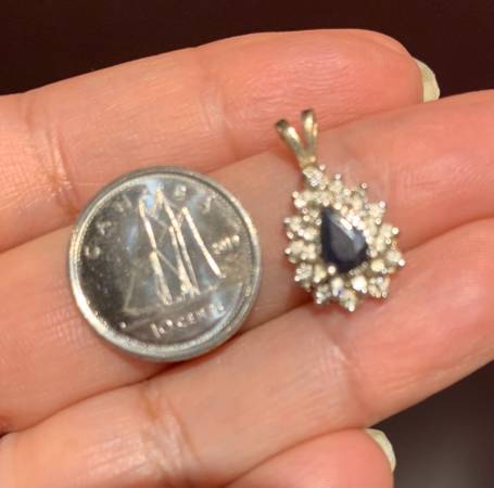 14K White Gold Pendant with Natural Sapphire and Natural Diamonds Stones Excellent Condition and Beautiful Design Can add a chain with a bit more money if interested please call or send an email