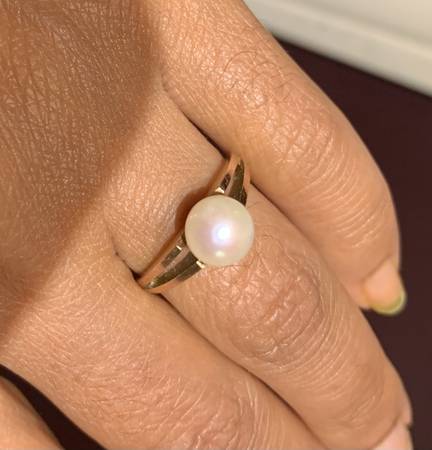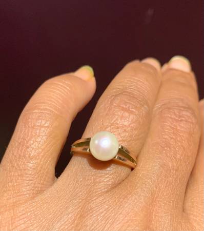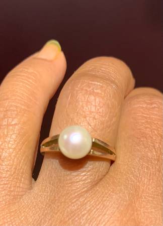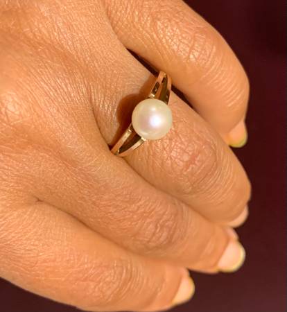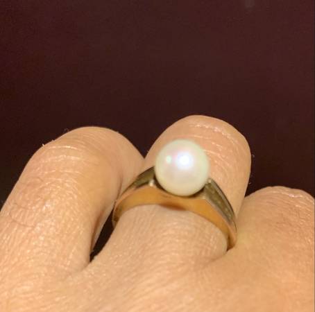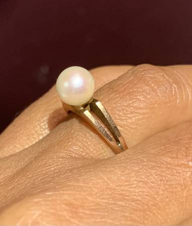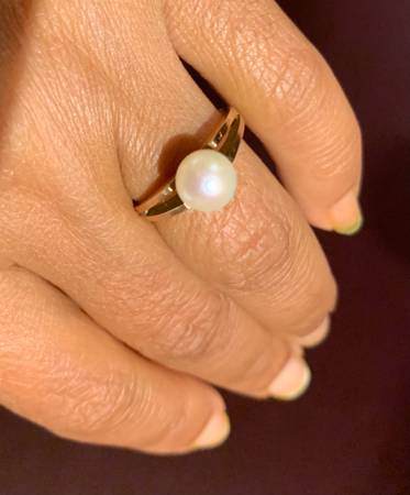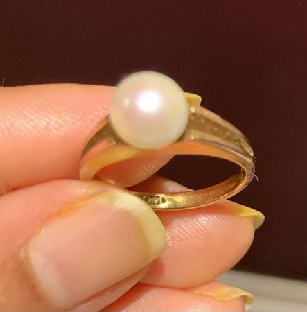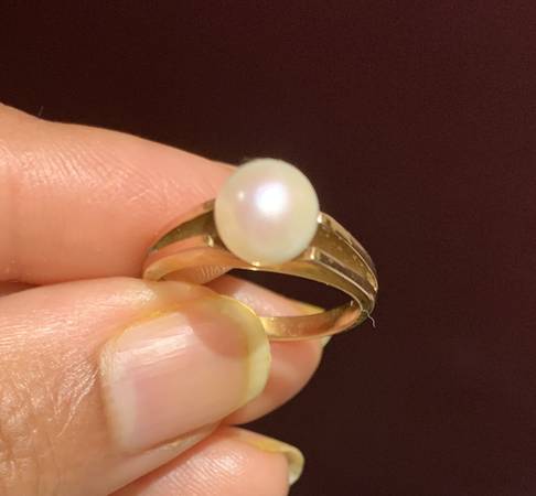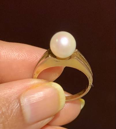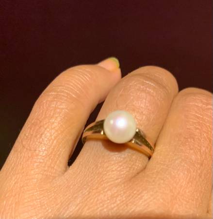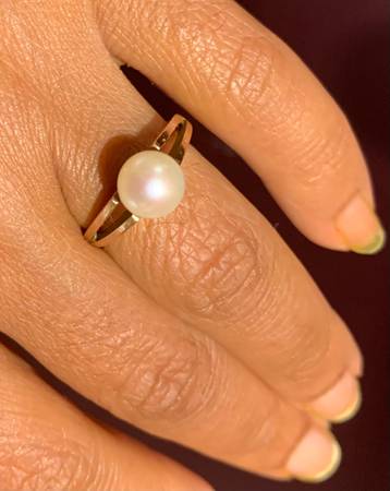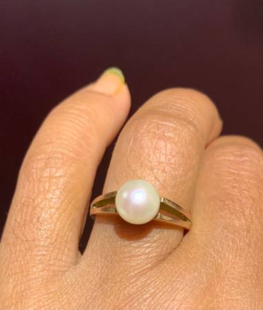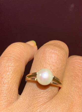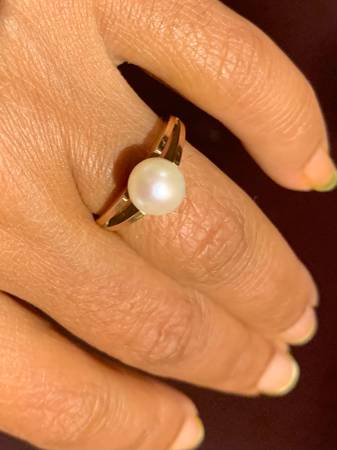 14K Yellow Gold Ring ( Size 6-7) with Natural Akoya Pearl Excellent Condition and excellent quality of Pearl If interested please call or send an email