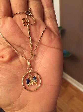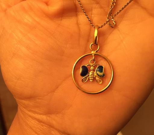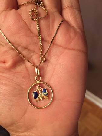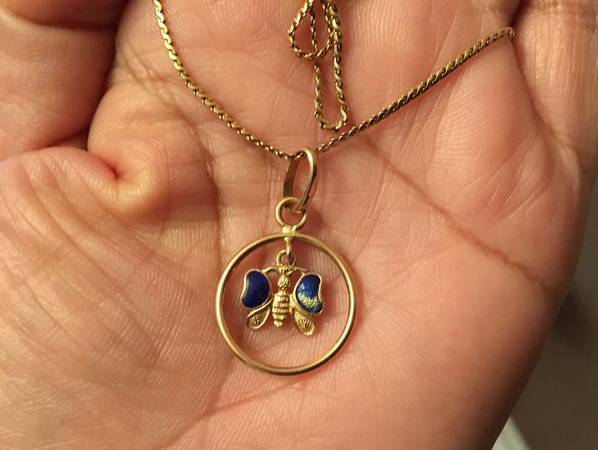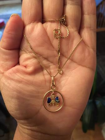23 Inch Italian 18K Yellow Gold Necklace with Butterfly Pendant (moving in the Circle) Excellent Condition and Elegant Style with Best Italian Gold Ever Very Special and Unique Design For those who...