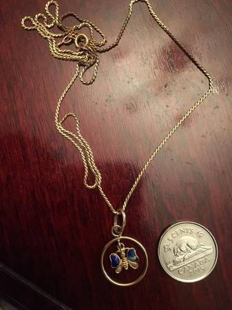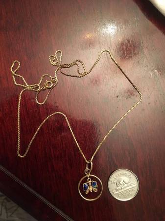 23 Inch Italian 18K Yellow Gold Necklace with Butterfly Pendant -...