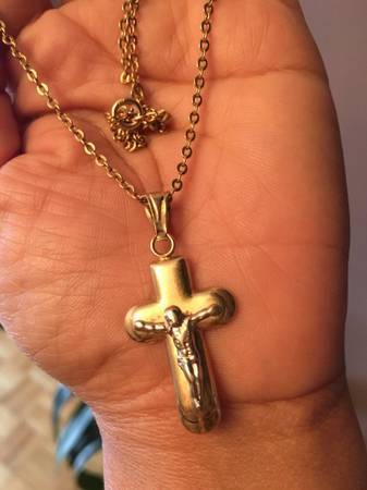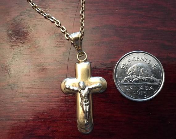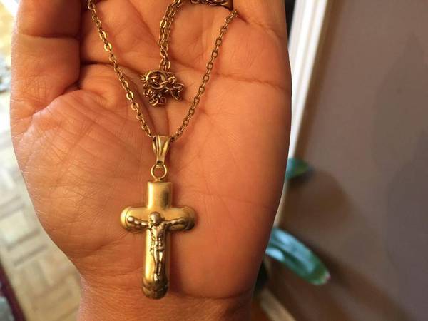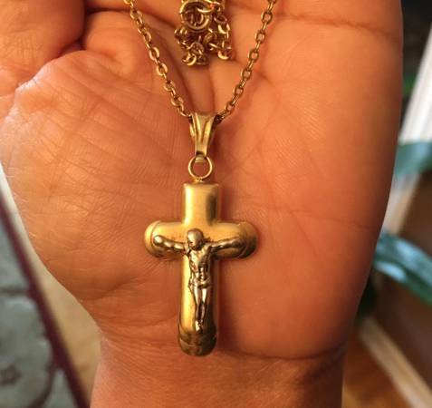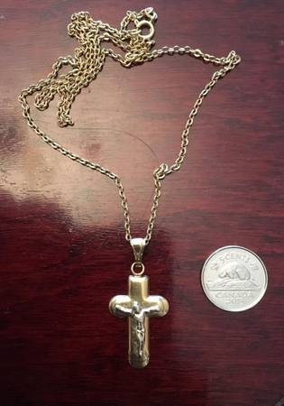 25 inch Long 18K yellow Gold Necklace with Crossification Cross...