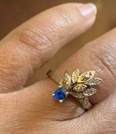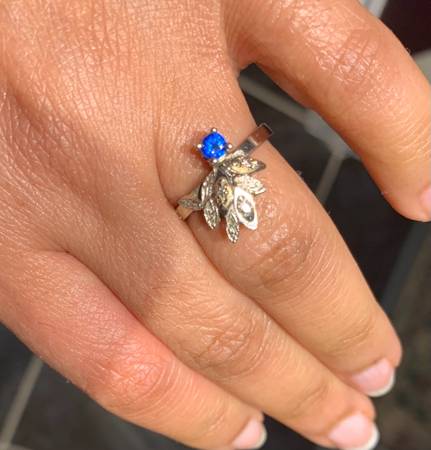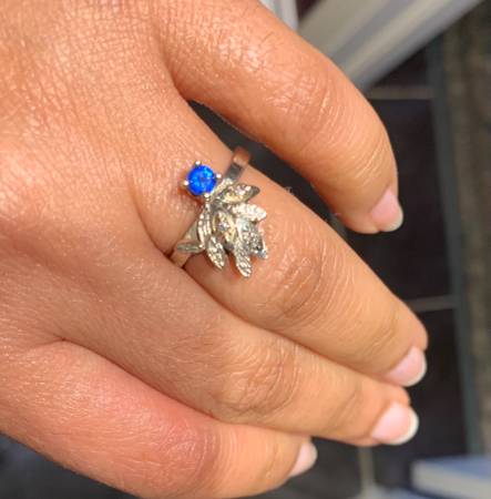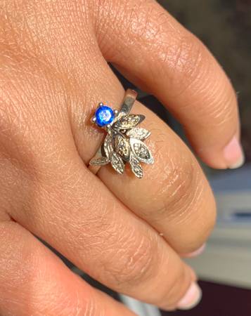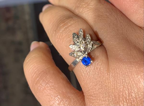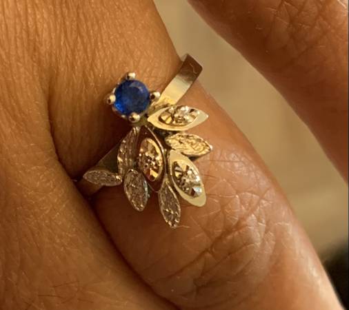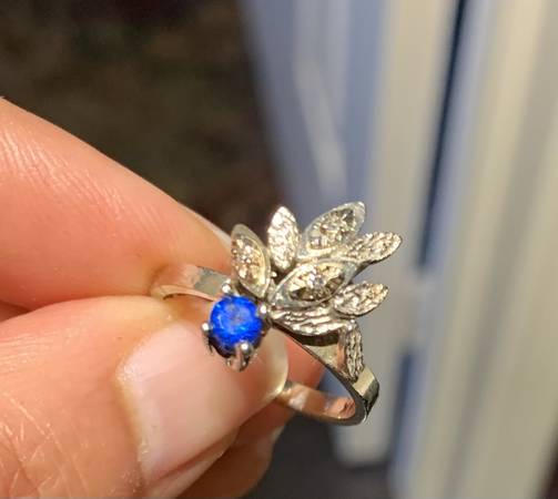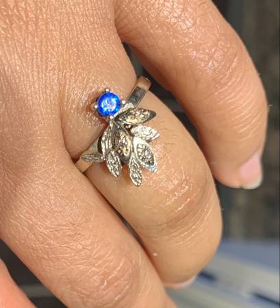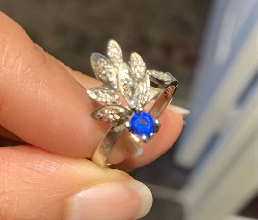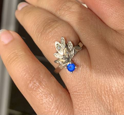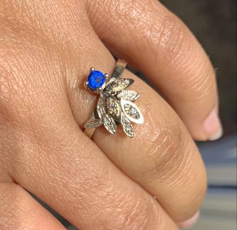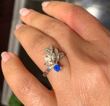 Brand New Natural Diamonds and Natural Sapphire 14K Gold White Gold Ring (Size 6) Have a clear 14K Gold Stamp Never Been Used if interested please call or send an email