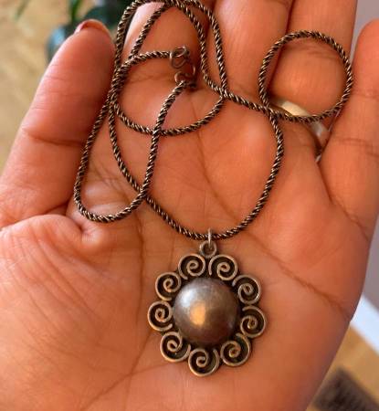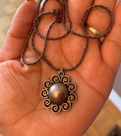 Solid Sterling Silver Necklace with Beautiful Unique Design Pendant like flower Excellent Condition and clear Sterling Silver Stamp to shows it is real silver and it is in everywhere Vintage and...