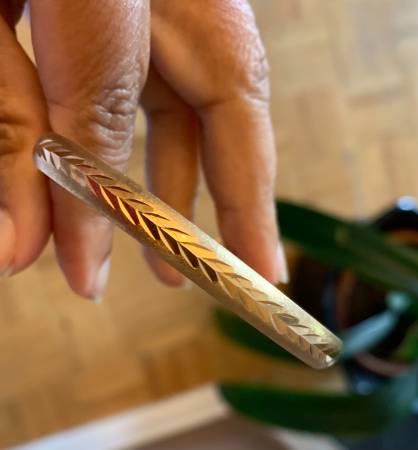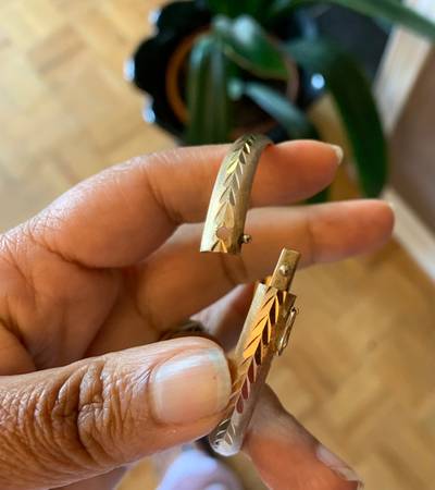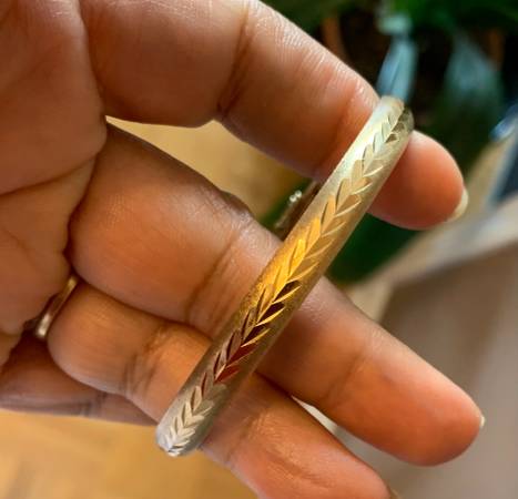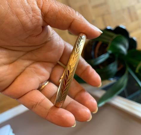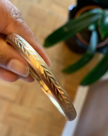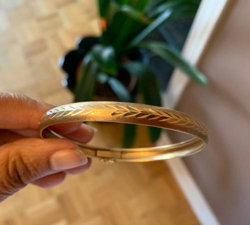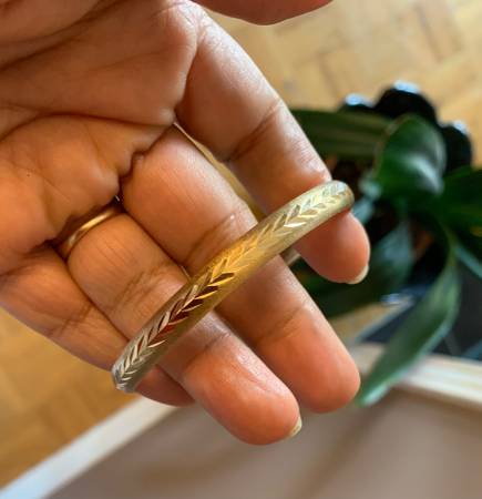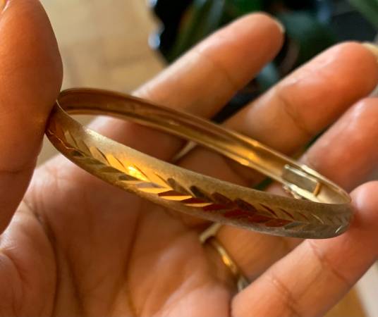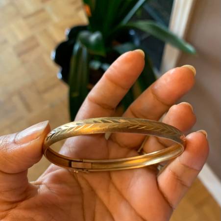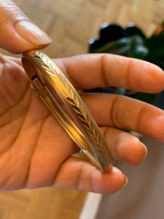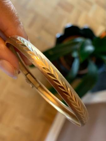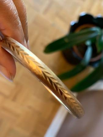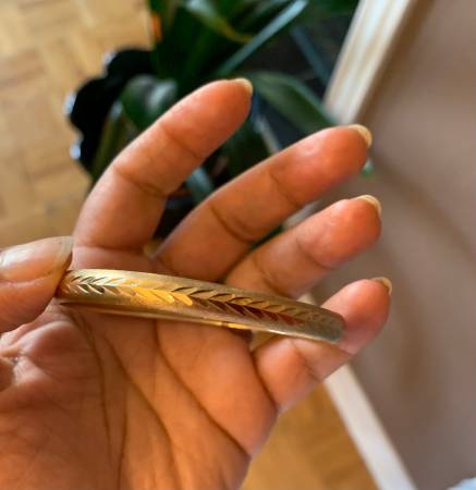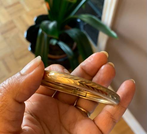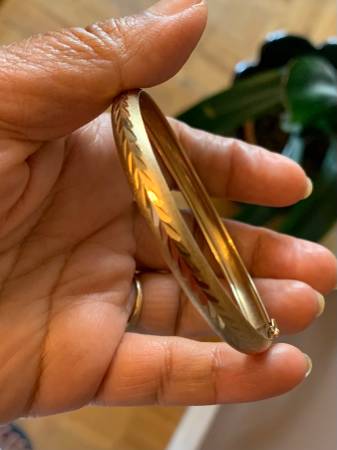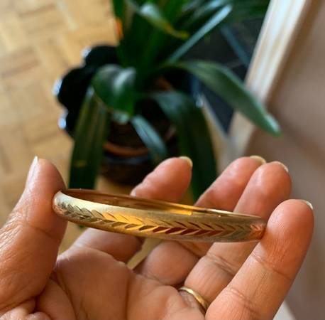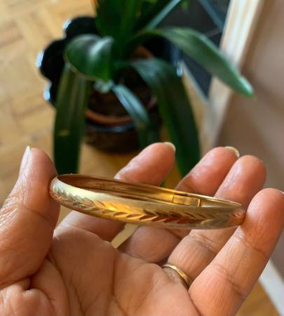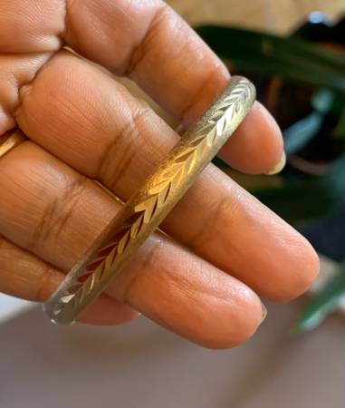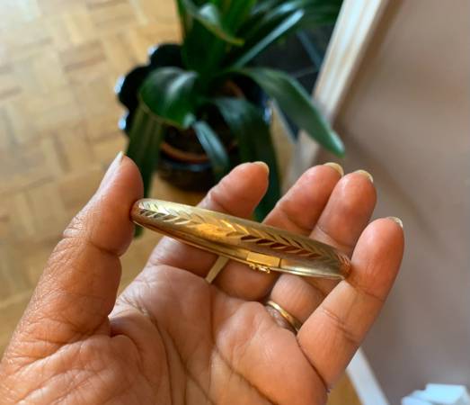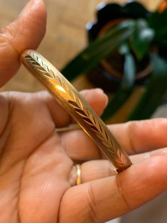 Solid Yellow Gold Bangle open from the side with Beautiful Design Excellent Condition Medium Size if interested please call or send an email
