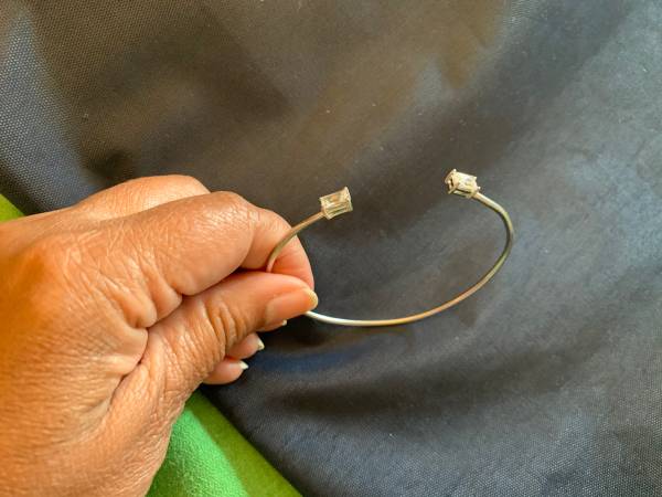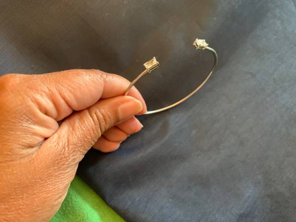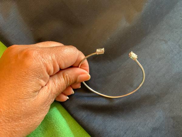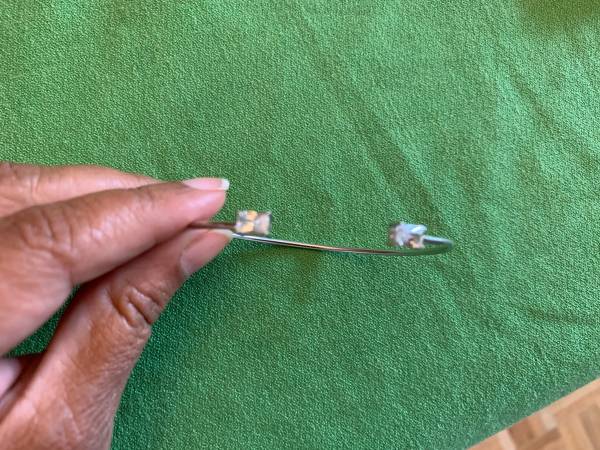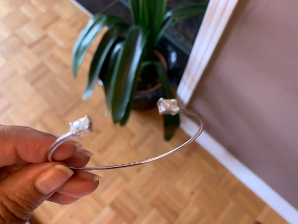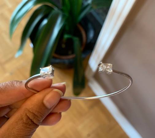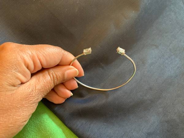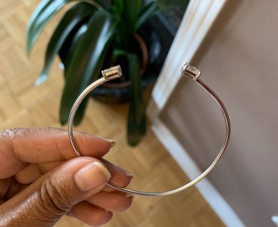Sterling Silver Cuff with 2 Emerald Cuts of CZ Stones Excellent Condition and such Elegant Design if interested please call or send an email