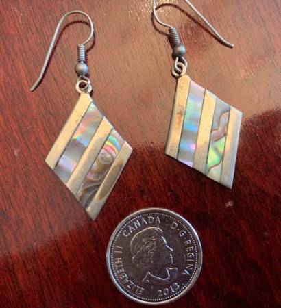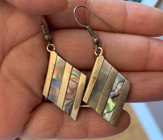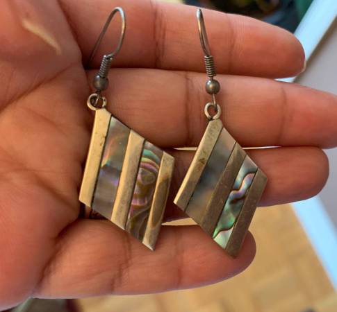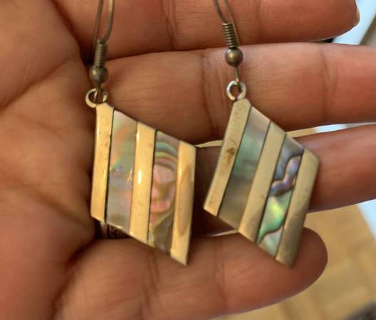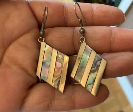 Sterling Silver Dangle Earrings with Natural Mother of Pearl Stones Beautiful Design and Genuine Piece of Jewelry Excellent Condition If interested please call or send an email