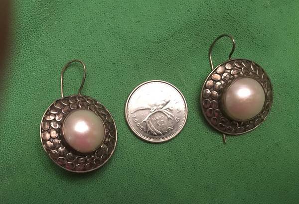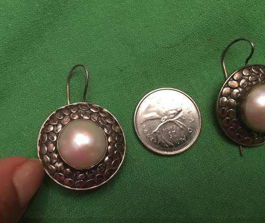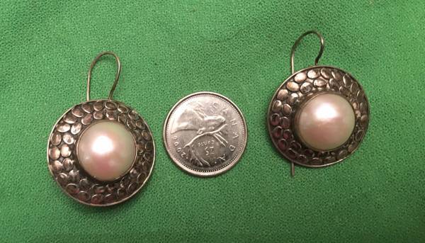 Sterling Silver Earrings that has a Vintage Style with a Big Real Pearl Excellent Condition and very very very Elegant with clear 925 Stamps everywhere Simply Stunning Pairs of Earrings Please call...