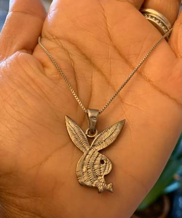 Sterling Silver Necklace with Natural Big Playboy Bunny Pendant Excellent Condition and Clear Silver Stamp everywhere with really Beautiful and Unique Design PlayBoy pendant if interested please...