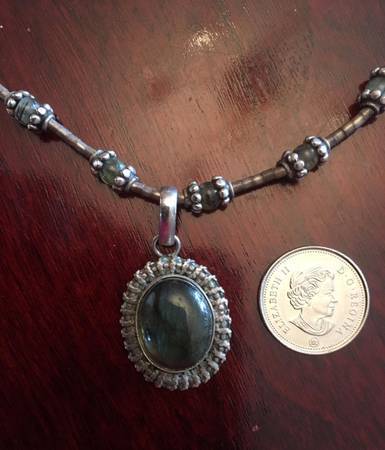 Sterling Silver Necklace with Beautiful Links and Natural Labradorite Stones Pendant Really Unique and amazing Design with Different Length Sizes One of the very Special Designs Please call or send...
