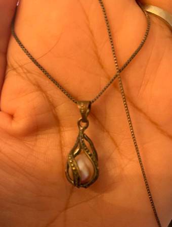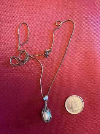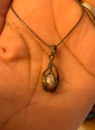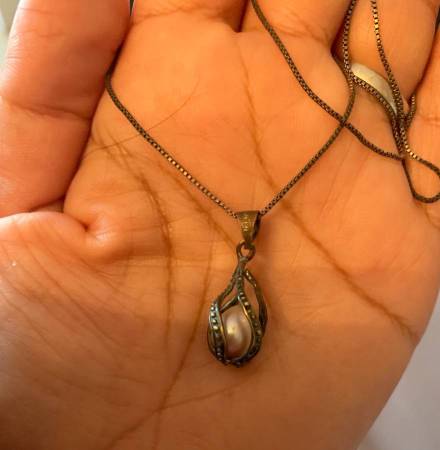 Sterling Silver Necklace with Elegant Design and Natural Pearl Pendant Excellent Condition and clear Sterling Silver Stamp everywhere with unique Design and Natural High Quality of Pearl if...