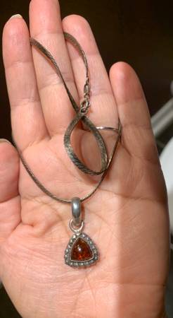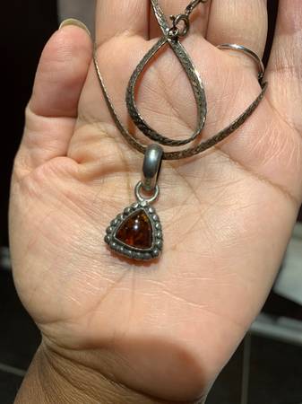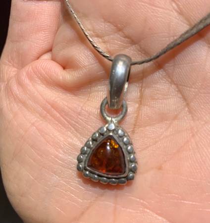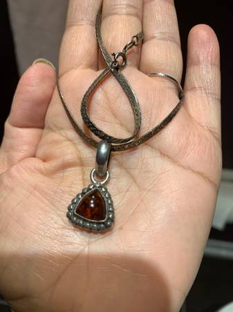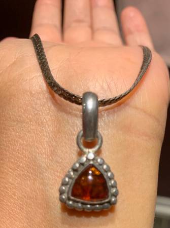 Sterling Silver Necklace with Natural Amber Stone and Beautiful...