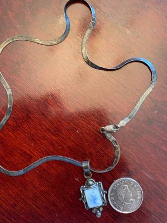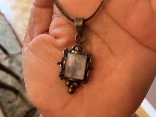 Sterling Silver Necklace with Big Natural Moon Stone Beautiful Design and Genuine Piece of Jewelry Excellent Condition with clear Sterling Silver Stamp If interested please call or send an email