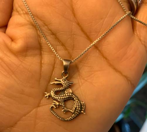 Sterling Silver Necklace with Dragon Pendant - jewelry - by owner -...