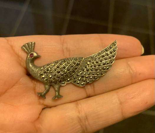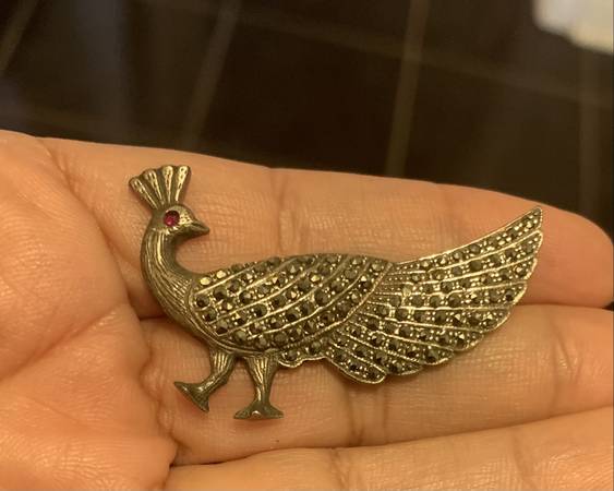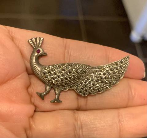 Sterling Silver Pin Brooch with Natural Ruby Stone and Marcasite Work Simply Stunning Very Clear Sterling Silver stamp with Excellent Condition And Beautiful Style. If interested please call or send...