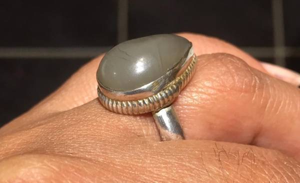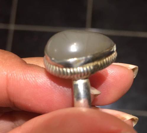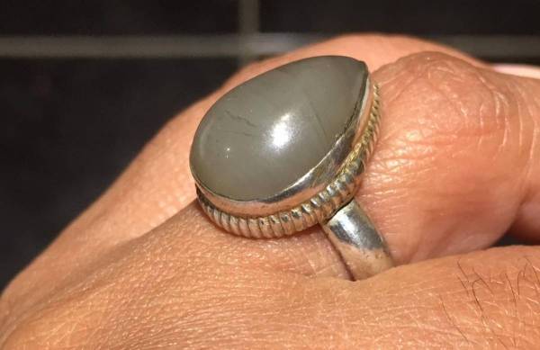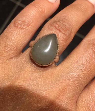 Sterling Silver Ring with Natural Green Pear Stone (size 6) Excellent Condition and clear sterling silver stamp if interested please call or send an email