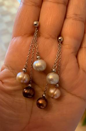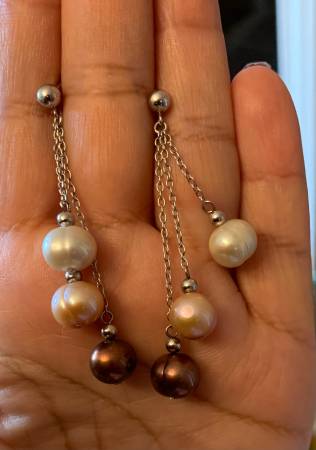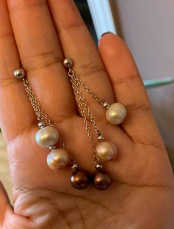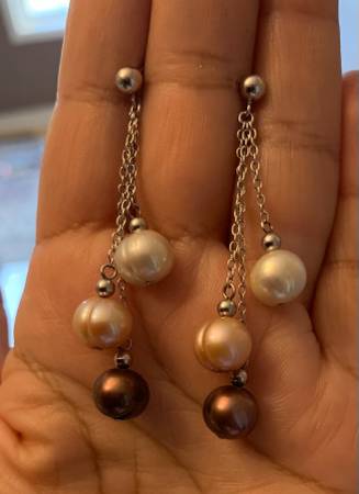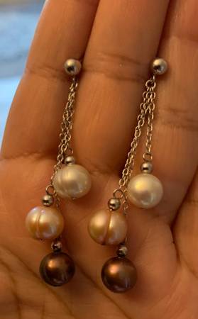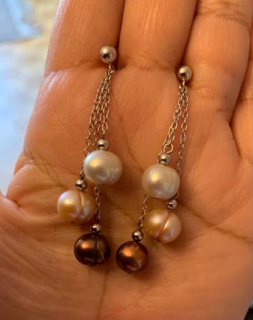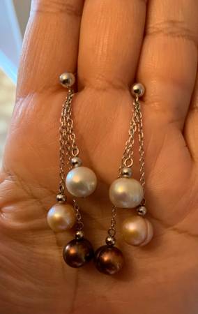 Sterling Silver Studs Earrings with Natural White, Pink and Brown Pearls Excellent Condition and Clear Silver Stamp Such an Elegant and such Beautiful Style if interested please call or send an email