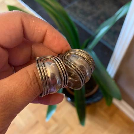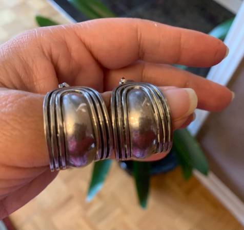 Vintage Sterling Silver Studs Hoop Earrings with Different Design Excellent Condition and absolutely Beautiful and Elegant For the Vintage Jewelery Lovers if interested please call or send an email