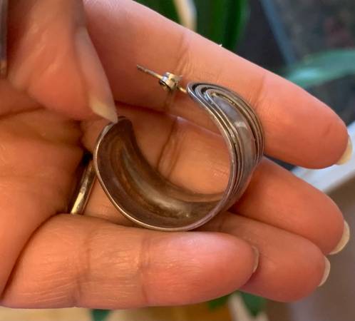Vintage Sterling Silver Studs Hoop Earrings with Different Design -...