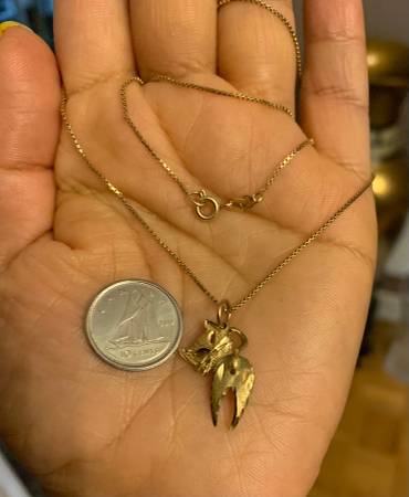 Yellow Gold Necklace with Cute Cat Pendant Excellent Condition and Beautiful Design Gold Stamp everywhere. If interested please call or send an email