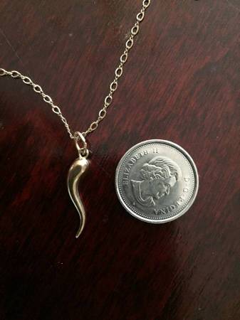 Very Elegant and Delicate Brand New yellow Gold Necklace with Italian Horn Pendant Brand New if interested please call or send an email