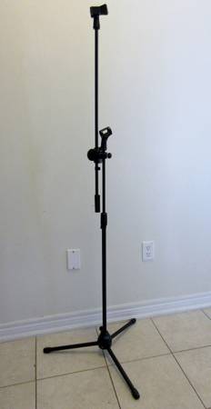 Height adjustable Can serve as boomstand or straight up Can carry two mics Brand new in box Please call