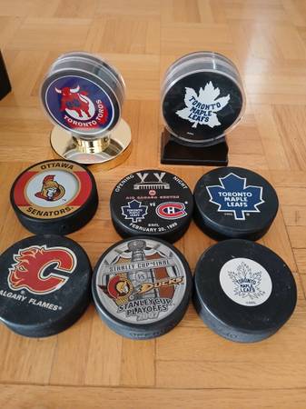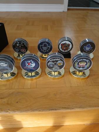 I have 16 ASSORTED VERY COLLECTABLE HOCKEY PUCKS all in very good condition (10 are in puck holders IN PUCK HOLDERS