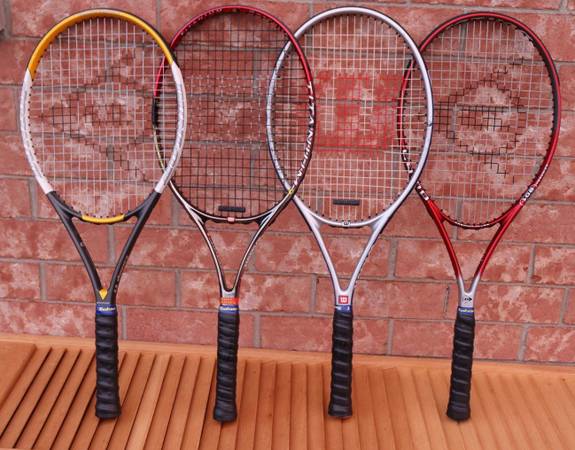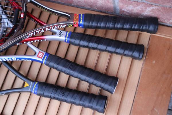 Tennis Racquet Bundle 4 Racquets + Yonex Multi Racquet Bag Wilson Dunlop Titanium 108 Head Balls Wristbands $110