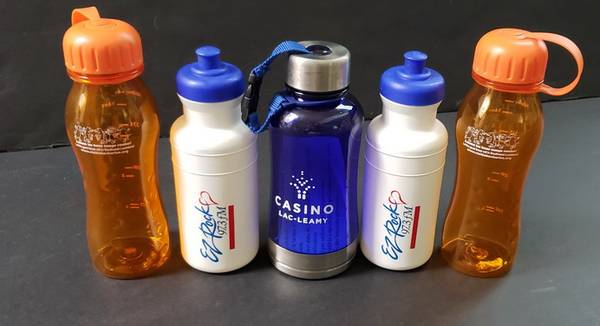 5 new sports water bottles * assorted logos & colours * easy filling, cleaning and drinking Price: $5 for all five Please reply with the Craigslist chat option rather than e-mail.