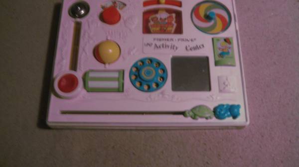 VINTAGE FISHER PRICE ACTIVITY BOARD WITH NUMEROUS ACTIVITIES---HOURS OF FUN AND DEVELOPMENTAL SKILLS GREAT FOR BABIES AND TODDLERS EXCELLENT CONDITION INCLUDES A MATCHING CONNECTING PART AND SCREW...