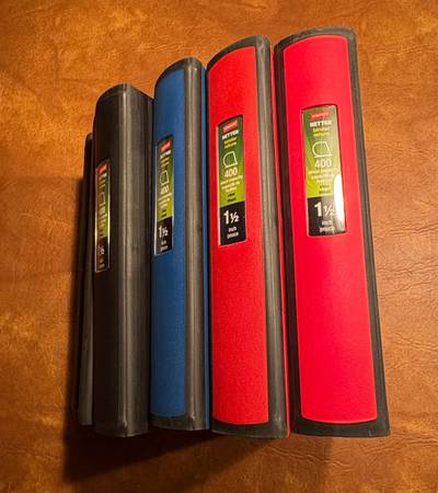 7 Staples (1 1/2” Binders) 1 Five Star Zipper Binder 53 Dividers 25 Slash Jackets 4 Exercise Books Great Condition 4/8 Binders Are Brand New
